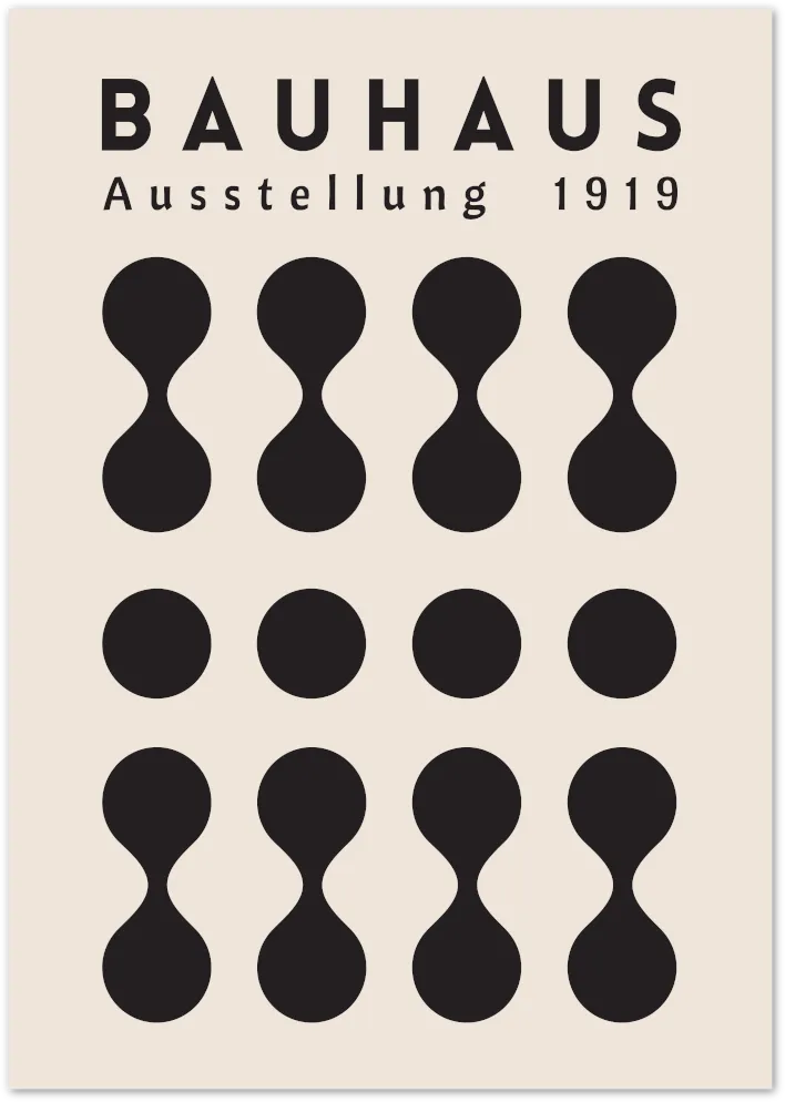 A sleek and balanced design featuring symmetrical dot patterns inspired by the Bauhaus Ausstellung of 1919. This minimalist poster is a true tribute to classic design principles.