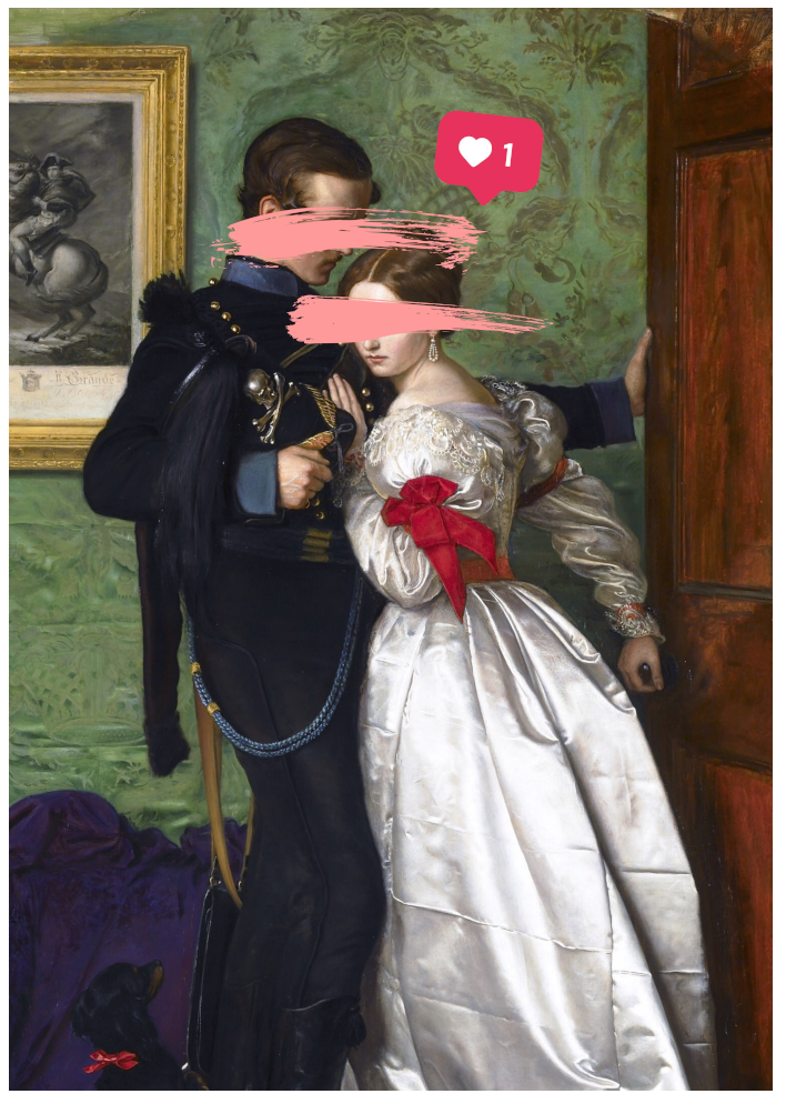 This romantic poster reimagines a classic painting with playful modern details. The subtle humor and elegant composition make this poster perfect for bedrooms, living spaces or gallery walls.