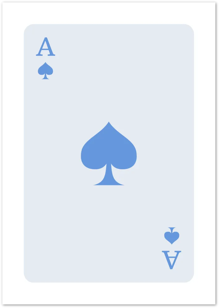 Clean and crisp, this minimalist Ace of Spades poster strips the playing card back to its essence. A calm, light-toned background gives it a modern, serene feel.