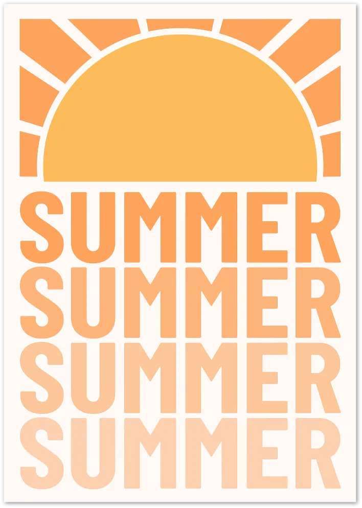 Een gedurfd en nostalgisch ontwerp dat de zomersfeer viert met een warme zonsondergang. Deze print straalt positieve vibes en retro-esthetiek uit.
