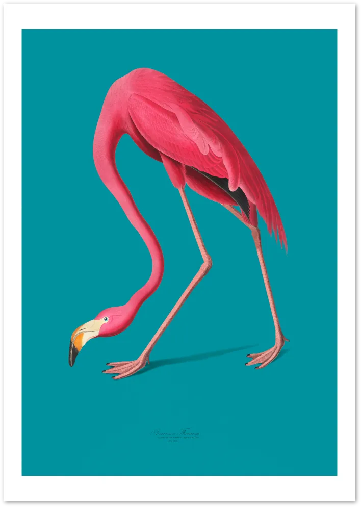 Vier klassieke wildlife-kunst met deze iconische flamingoposter.