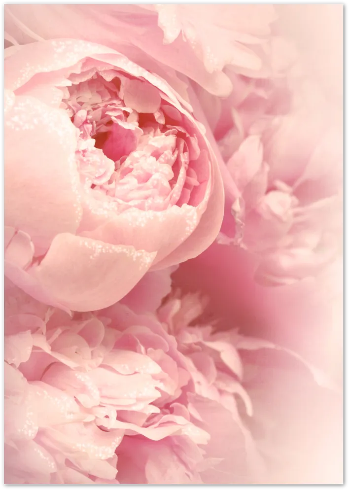 A dreamy floral photography poster featuring soft pink peonies in full bloom. A delicate and romantic addition to any interior.